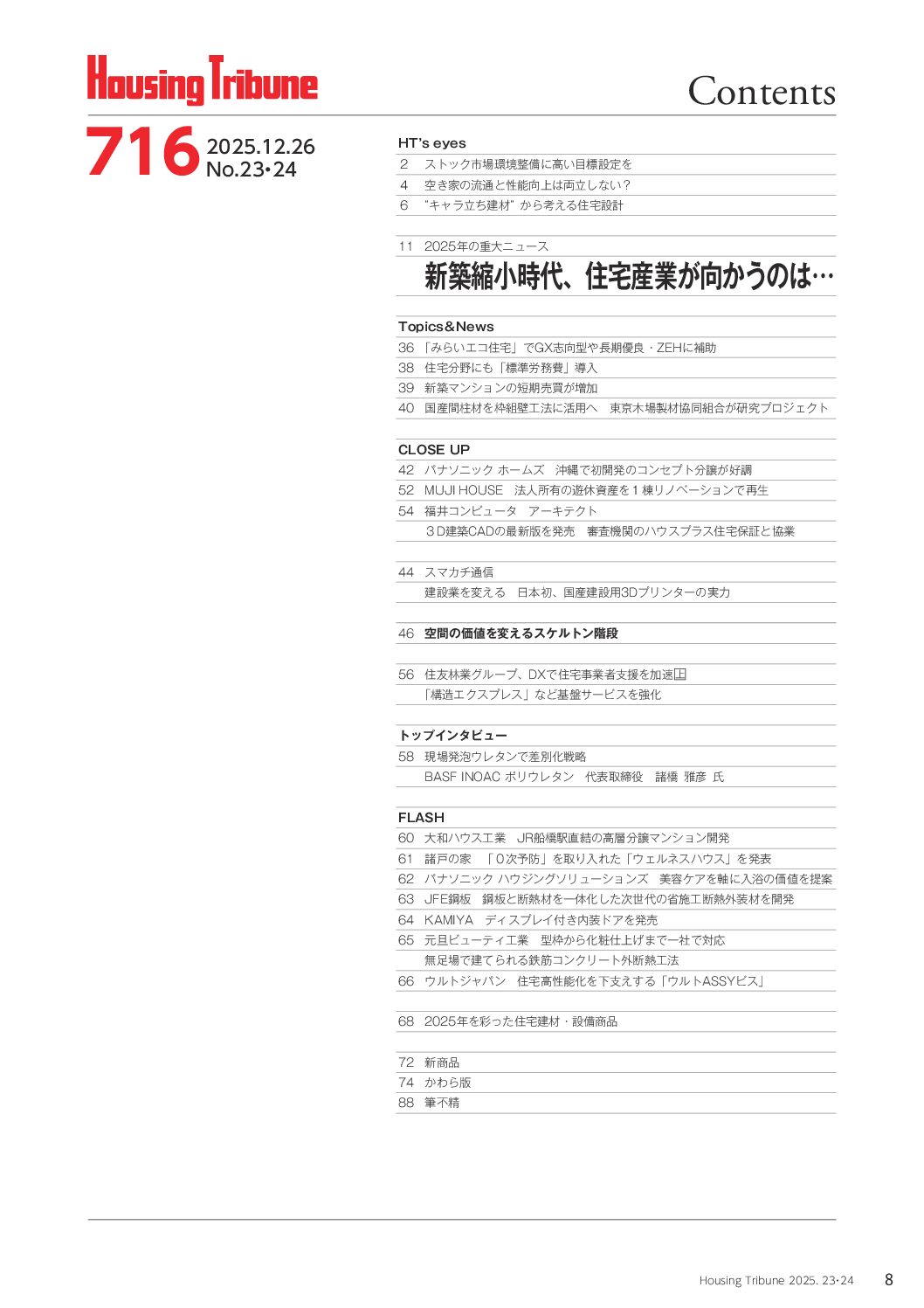 25年は、住宅価格の高騰、空き家の増加、人手不足の深刻化など、住宅産業を巡る環境は厳しさを増す一年となった。